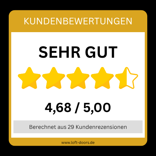 Von der Bestellung bis zur Lieferung hat alles hervorragend funktioniert. Die Lofttür macht einen stabilen Eindruck, das Design ist zeitlos und modern zugleich. Unsere Räume wirken jetzt viel offener und heller. Ein rundum gelungenes Produkt!